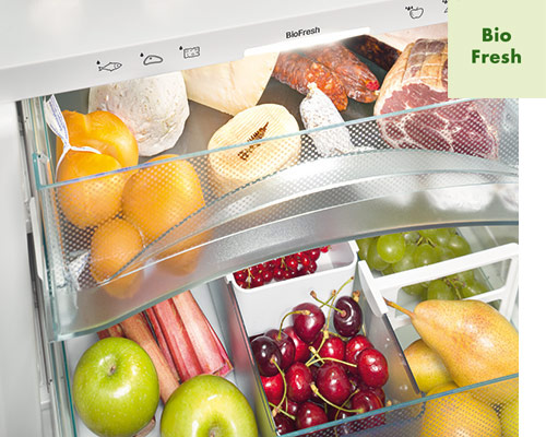 Technologia BioFresh gwarantuje idealny klimat dla długotrwałej świeżości. Przy temperaturze zbliżonej do 0°C i odpowiedniej wilgotności powietrza, warzywa i owoce, mięso, ryby oraz produkty mleczne zachowują witaminy, delikatny aromat i apetyczny wygląd znacznie dłużej niż w normalnej chłodziarce.
