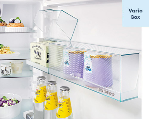 Dwa zdejmowane pojemniki VarioBox, są idealne do przechowywania niewielkich produktów. Pojemniki umieszczone są na solidnych szynach ze stali nierdzewnej, zabezpieczających przed wypadnięciem.