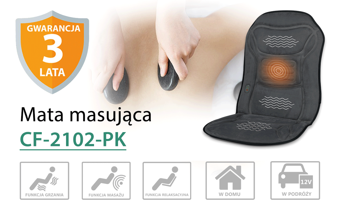 Mata masująca posiada silniki w określonych miejscach, w których ludzie najczęściej odczuwają napięcia. Mata szybko rozluźnia spięte i zmęczone mięśnie. Idealna dla osób żyjących w ciągłym stresie, przepracowanych, kierowców wyjeżdżających w długie trasy ale także dla osób ceniących wygodę i komfort. Pomaga ożywiać i odmładzać ciało. Masaż to sposób na zrelaksowanie się i rozluźnienie. |