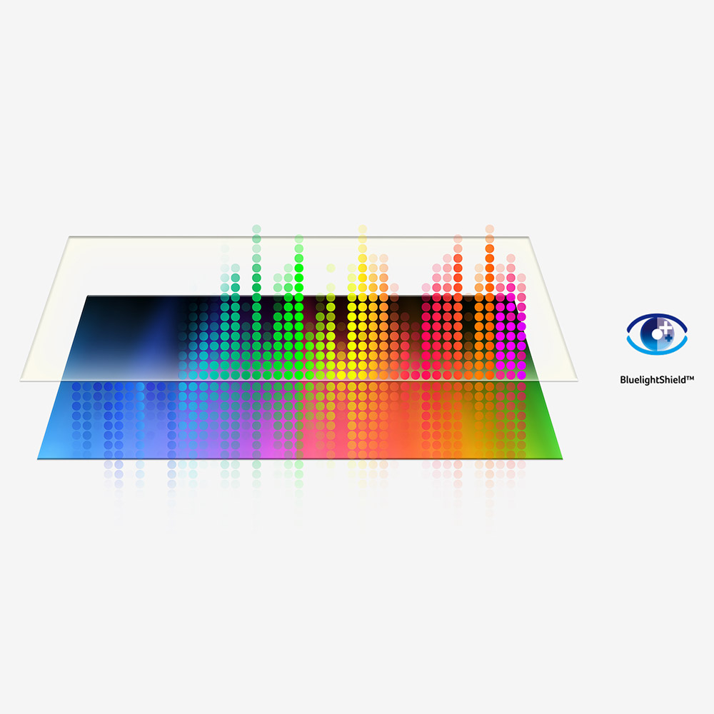 Technologia BlueLightShield™ redukuje emisję niebieskiego światła, które może być szkodliwe, poprzez regulację jasności oraz odcieni kolorów.