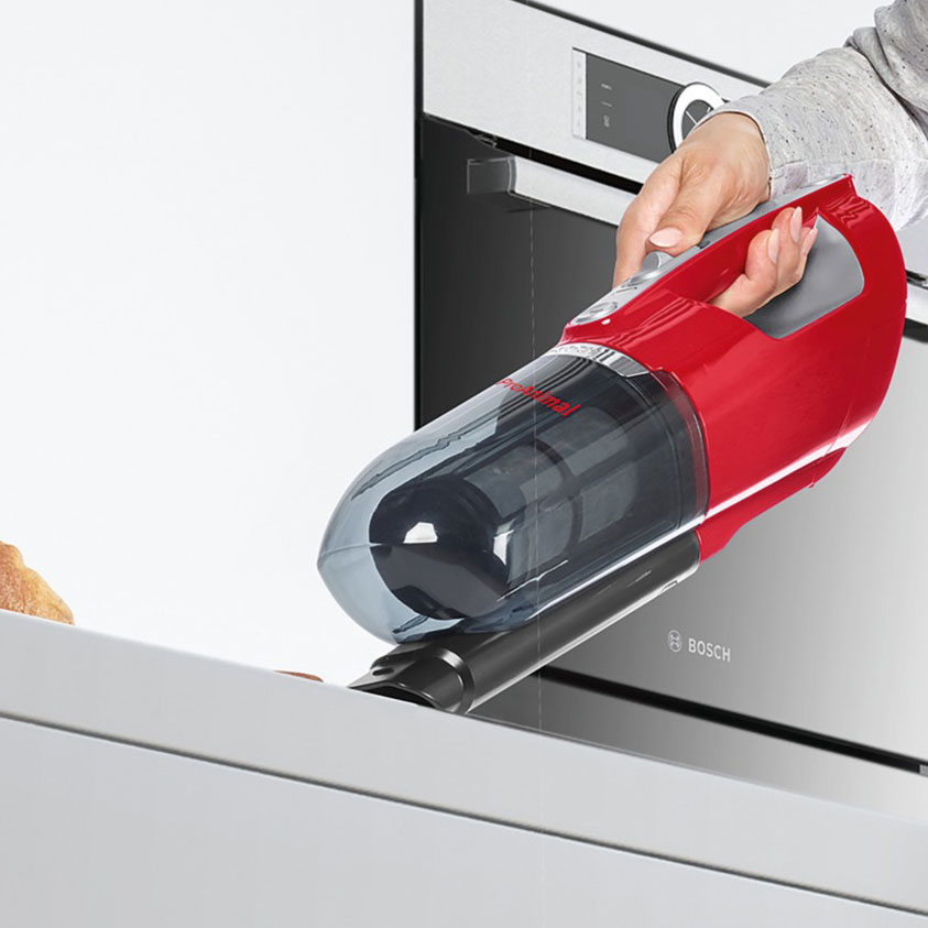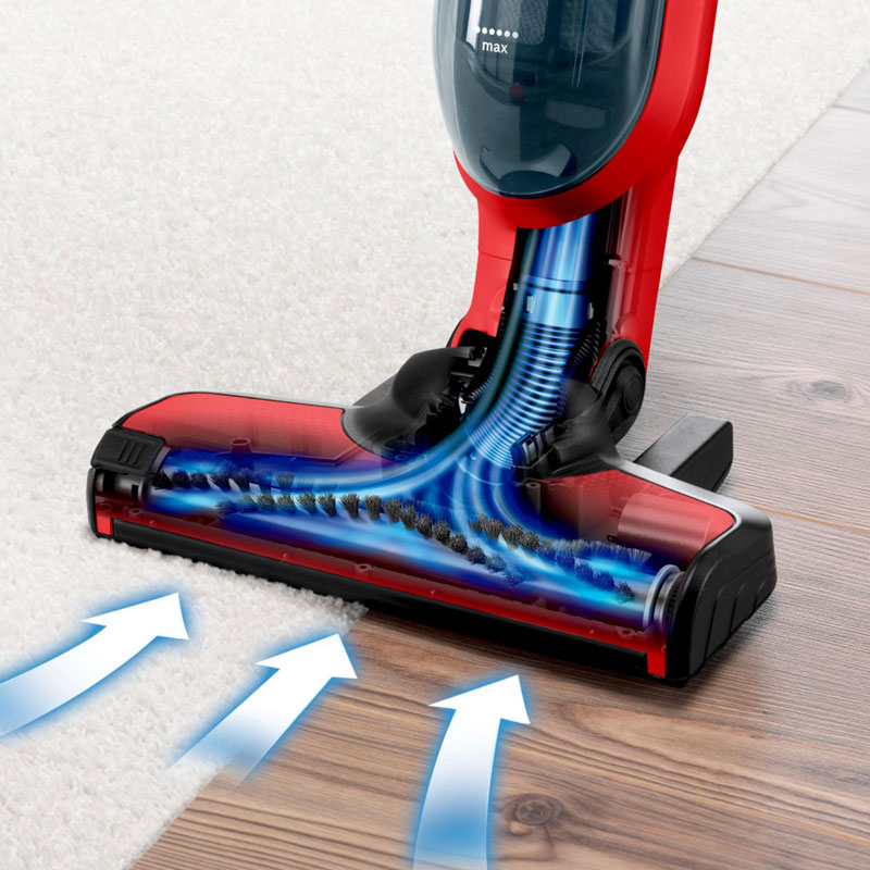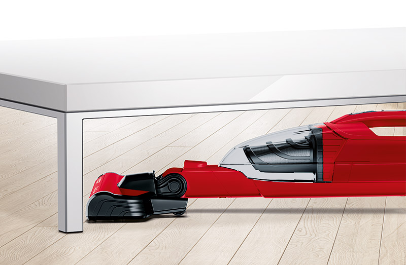 Niemal nieograniczone możliwości odkurzania — urządzenie działa niezależnie od gniazdek i jest niesamowicie poręczne dzięki elastycznym końcówkom ssawki. Urządzenie niezawodnie odkurza i z łatwością porusza się wokół mebli. Może też dotrzeć do zakamarków pod sofami, kredensami i szafkami.