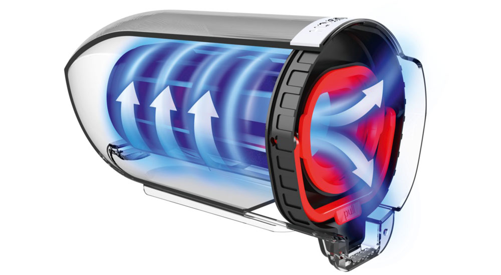 Zoptymalizowana izolacja i cyklonowy ruch powietrza zapewniają najwyższą skuteczność odkurzania nawet przy zapełnionym pojemniku na kurz.