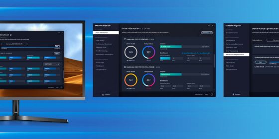 Spraw, aby Twój dysk działał jak magia. Nowe i ulepszone oprogramowanie Samsung Magician 6 sprawi, że dysk SSD będzie pod kontrolą. Możesz łatwo zarządzać dyskiem za pomocą szerokiej gamy przydatnych narzędzi, które pozwalają na bieżąco śledzić najnowsze aktualizacje, monitorować stan dysku, a nawet zwiększać jego wydajność.